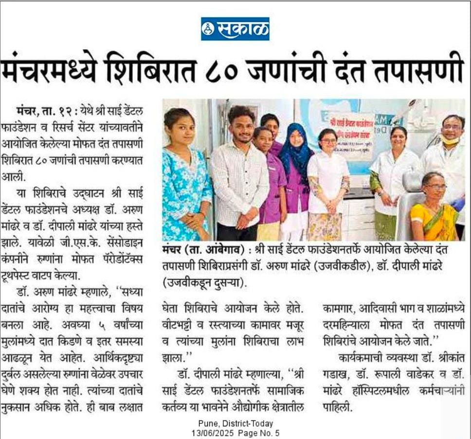 Shri Sai Dental Foundation brings modern, affordable dental care to rural communities. From free school camps to advanced cancer screening, we care for every smile. Join us in building a healthier, happier Maharashtra.